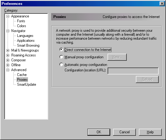 Follow the steps in the following pictures to get Netscape 4.x setup to use your local proxy server.